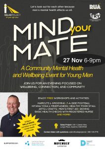 Mind Your Mate is more than an event – it’s a chance for the community to come together, support one another and learn tools that strengthen both individual and collective wellbeing. Whether you join for the workshops, the activities, the conversations, or simply the atmosphere, everyone is welcome.