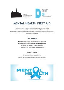 As part of the event, Smart D8 will deliver a Mental Health First Aid workshop from 1pm-2pm, facilitated by Kieran Doyle.